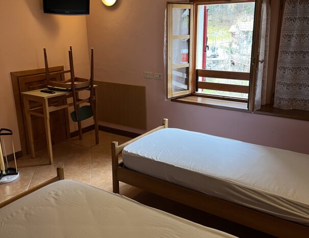 Le camere sono dislocate su 3 piani e sono suddivise in singole, doppie, triple e multiple. Le camere doppie e triple sono dotate di bagno privato interno, mentre le multiple di bagno privato esterno.